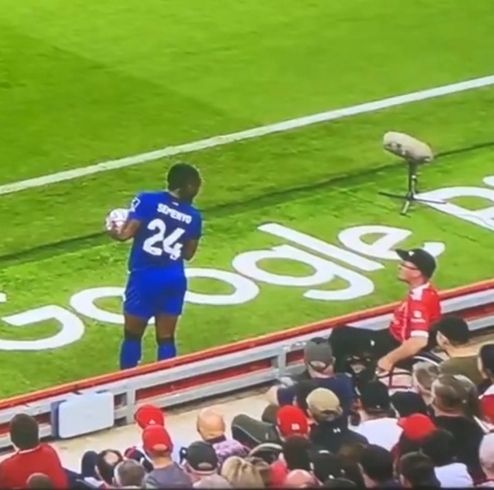 据报道,在利物浦vs伯恩茅斯的比赛中,伯恩茅斯前锋塞梅尼奥遭到种族歧视辱骂,随后这名球迷被驱逐出安菲尔德球场。